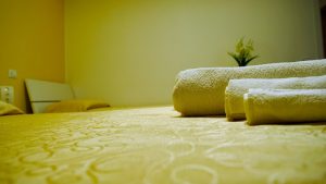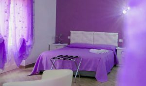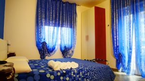 Le camere sono ampie, luminose e arredate con cura. Ogni stanza ha una parete colorata coordinata con i rivestimenti del bagno e altri dettagli, creando un’atmosfera accogliente e curata. Tutte le sistemazioni sono dotate di aria condizionata, TV a schermo piatto da 32”, Wi-Fi veloce e bagno privato. Sono disponibili camere matrimoniali uso singola, matrimoniali, triple e quadruple.
